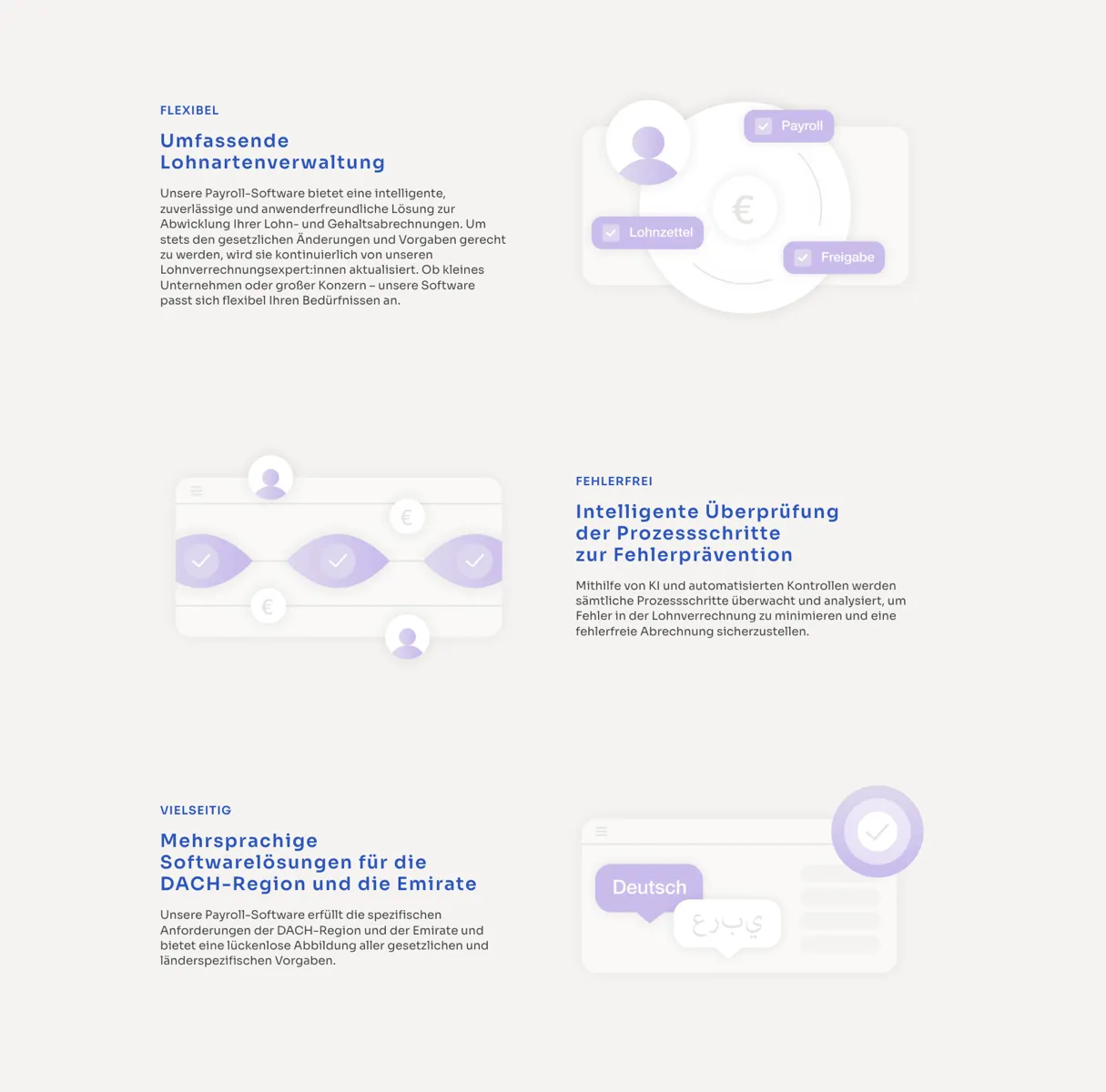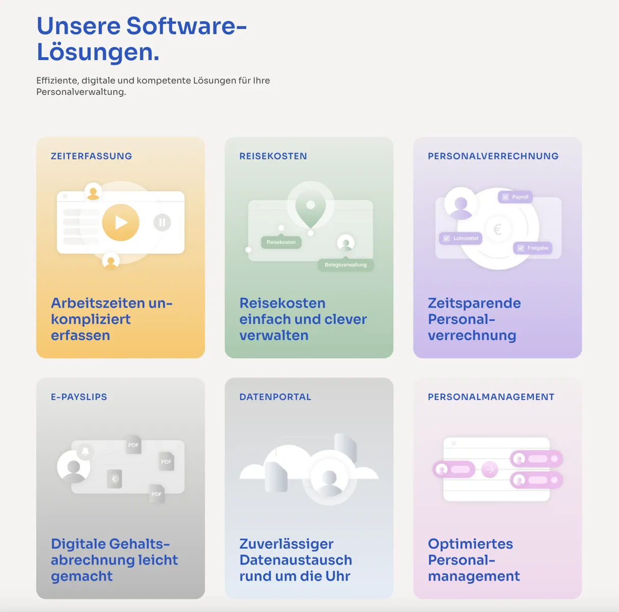 The new website now brings a breath of fresh air to the B2B landscape. Each of their software solutions has been given its own color – so you can immediately see where you are. Illustrations instead of interchangeable icons give the whole thing more character and make complex topics easy to understand. The tone has also changed: less technical distance, more personality.